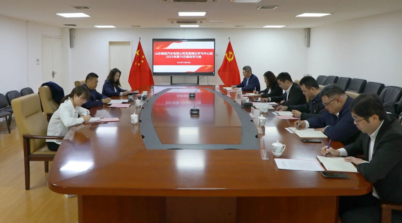 10月28日,山東銀座汽車有限公司(以下簡稱銀座汽車)召開黨委理論學習中心組2025年第10次集體學習會,圍繞“深入學習貫徹黨的二十屆四中全會精神,認真學習《習近平談治國理政》第五卷,切實把思想和行動統(tǒng)一到黨中央決策部署上來,把學習成果轉(zhuǎn)化為干事創(chuàng)業(yè)、推動公司高質(zhì)量發(fā)展的實際成效”主題開展集體學習研討。銀座汽車黨委書記、董事高艷強主持會議并講話。部分黨委理論學習中心組成員結(jié)合學習心得體會作重點發(fā)言。魯商福瑞達醫(yī)藥股份有限公司黨委副書記、董事周明率工作組一行3人到會列席指導。